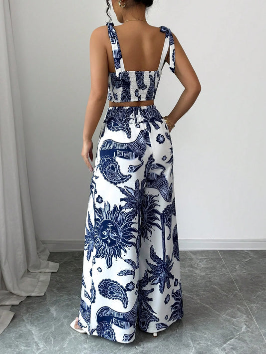 Boho Floral Print Top & Pants Set