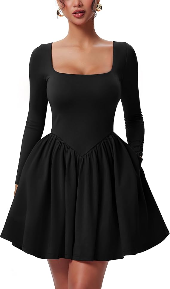 La mini-robe décontractée à manches longues et encolure carrée LUXIA™ allie féminité moderne et élégance au quotidien. Dotée d'une encolure carrée flatteuse et de manches longues ajustées, cette robe met magnifiquement en valeur le décolleté tout en conservant une silhouette raffinée et harmonieuse.