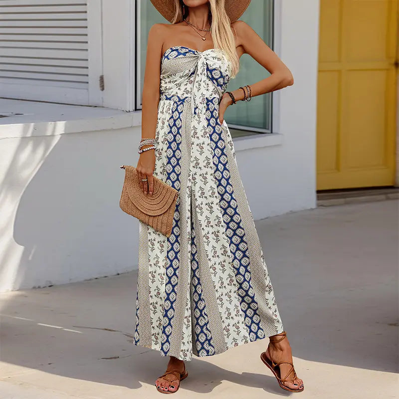 Combinaison sans bretelles à smocks, haut tube et pantalon évasé – L'élégance estivale en toute simplicité