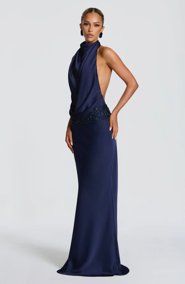 LUXIA™ Armelle Maxi Dress är sinnebilden av elegans och grace. Med sitt eleganta satintyg och draperade halterneck ger klänningen en lyxig känsla och en naturligt chic silhuett. Den omsorgsfullt utformade designen framhäver dina naturliga kurvor samtidigt som den ger en smickrande passform, vilket gör den till det perfekta valet för formella tillställningar eller speciella tillfällen.